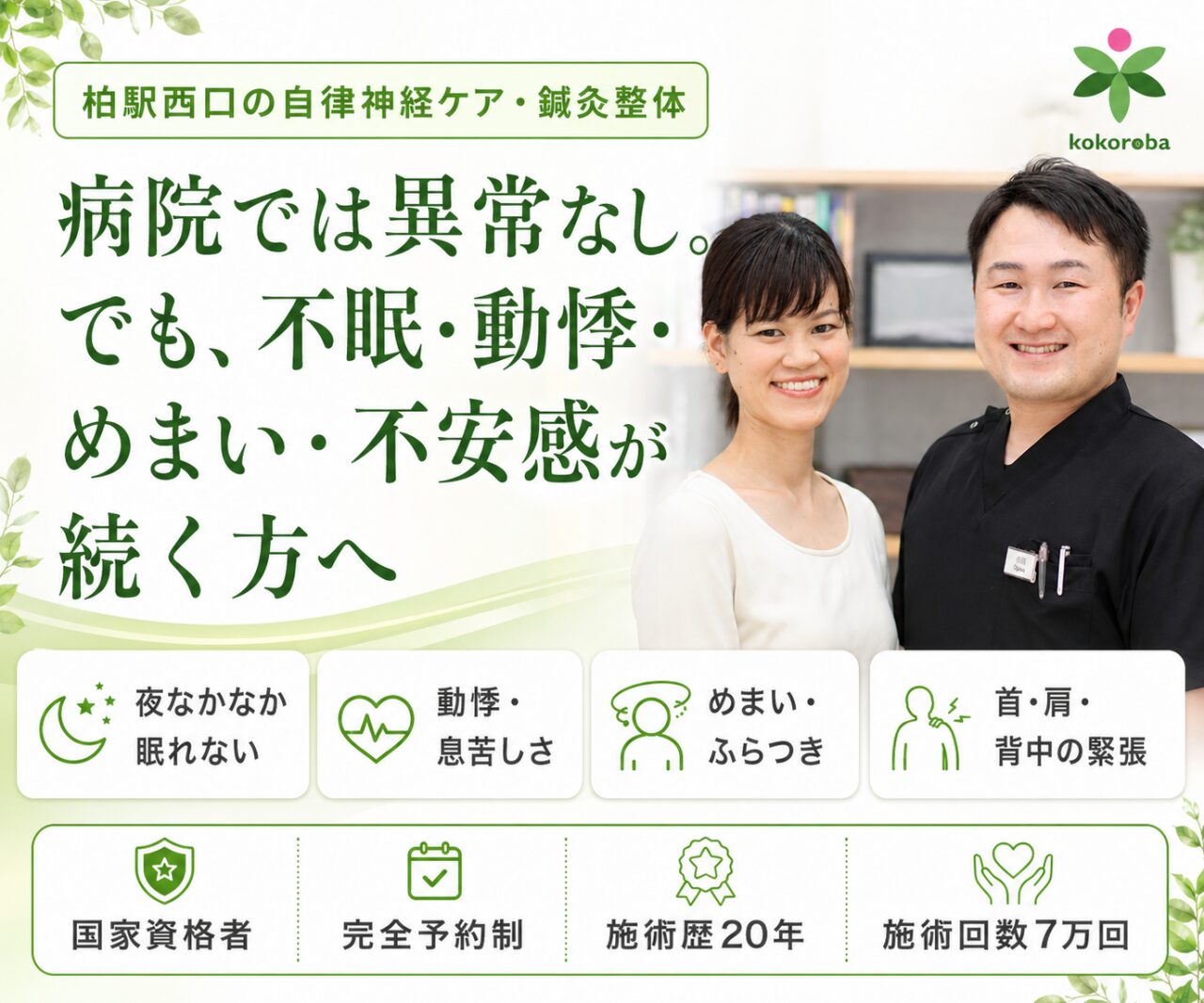 もし、健康のお悩みで治療院を探しているなら是非、心葉鍼灸院治療院 柏院をお尋ねください。